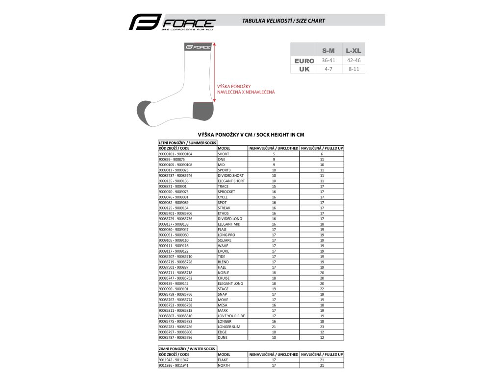 vyšší cyklistické ponožky FORCE i pro další sporty